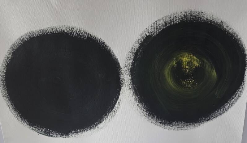 Genesis of Atoms explores the poetic tension between chaos and creation — the invisible moment when energy gathers to form new life. Through layered textures, circular forms, and interconnected lines, the piece captures the pulse of beginnings, echoing the microscopic dance of atoms as they shape something new. The vibrant yellow background radiates vitality and possibility, while the circles and semi-circles symbolize unity, growth, and the cyclical nature of creation. This work invites the viewer to pause at the threshold of formation — where every start holds both mystery and promise.